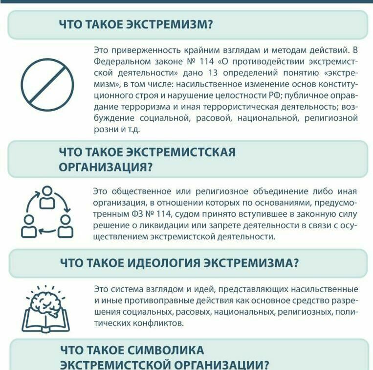 Понятие террористической деятельности складывается из перечисления, предусмотренных различными статьями УК РФ функций, классифицированных по пяти видам: