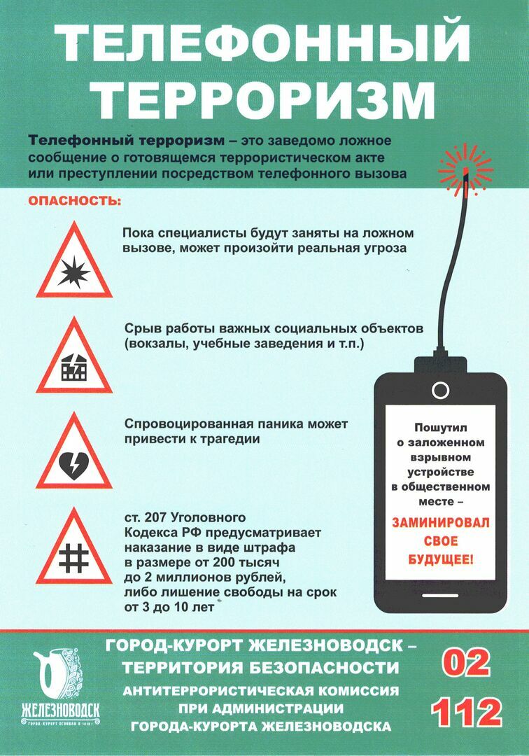 Действия при получении по телефону сообщения об угрозе террористического характера, правила обращения с анонимными материалами, содержащими угрозы террористического характера.